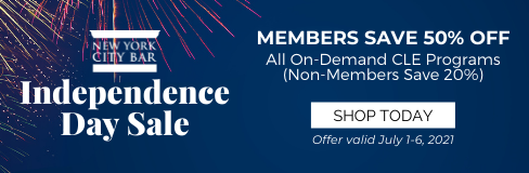 The City Bar will close at 2:00 p.m. on Friday, July 2, and will be closed on Monday, July 5, in observance of Independence Day. / The City Bar’s building is open on a limited, appointment-only basis, with access expected to increase gradually over the coming months. To schedule a visit, and for the latest on how the City Bar is addressing the pandemic, click here.